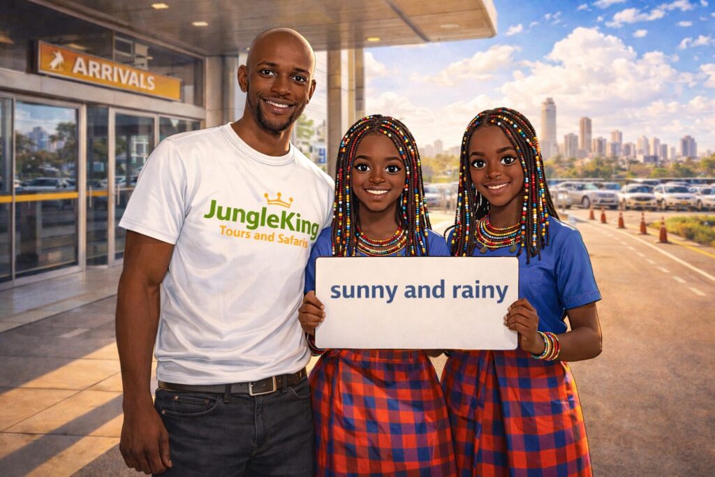 Our Kenya trip had been booked through a tour agency called JungleKing Tours and Safaris. Their owner, Mark, was waiting for us at the airport, surrounded by a group of female staff holding placards with travelers’ names. One of them read, “Sunny and Rainy.” I burst out laughing. Rani frowned at the spelling of her name.