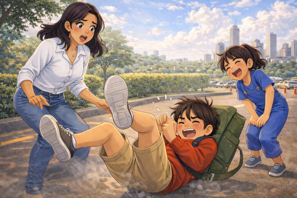 I fell with a thud, flat on my back. Luckily, my backpack cushioned the fall, so it didn’t hurt much. Mummy picked me up, and Daddy asked if I was okay. I was—but in my mind, I knew exactly why this had happened.