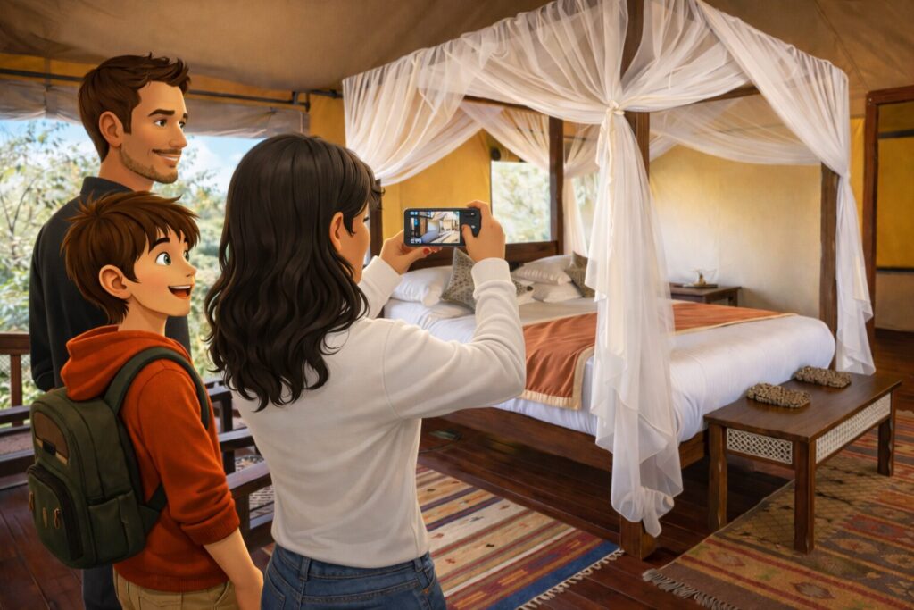 Now, I was alone with my mother and father. As we entered, we realised it was a tent — a large tent with handcrafted details and accessories. Mom did not let me sit to untie my shoelaces. She made me and Daddy wait at the door till she was done recording a video of the entire room — first from the left to the right, then right to left — as if things changed with the direction.