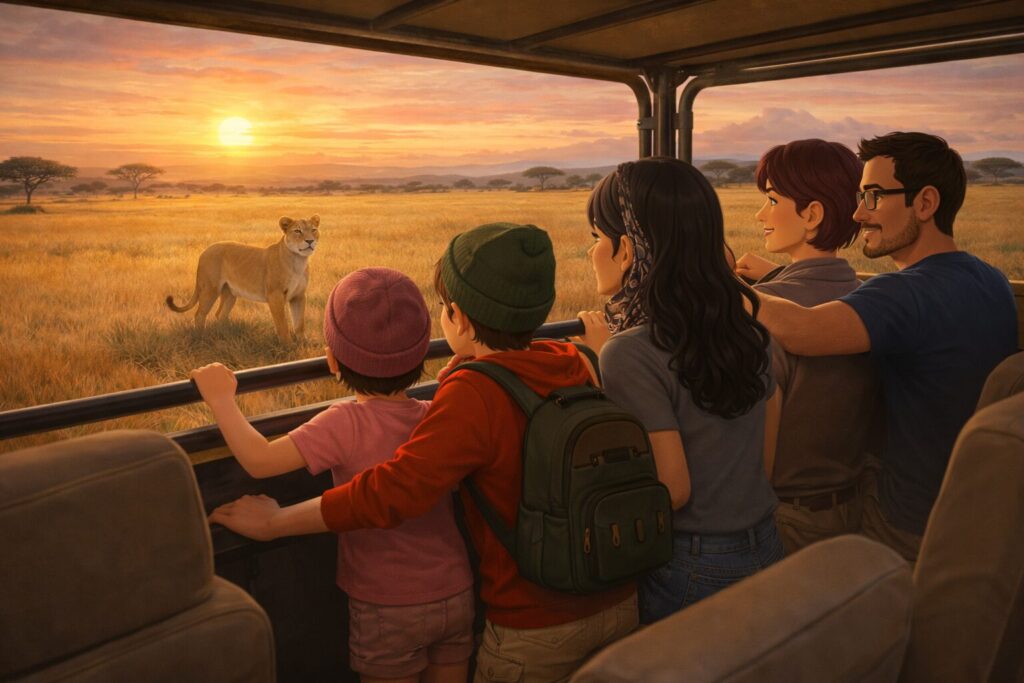 “Sunny, while you slept, we saw zebras, giraffes, and elephants!” said Rani with a sly smile.