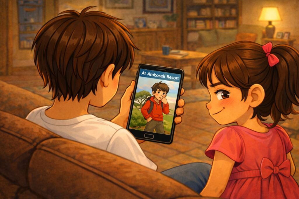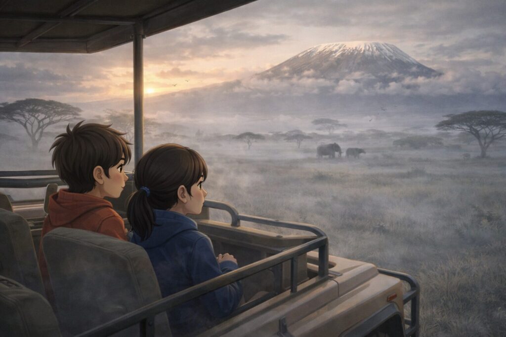 The morning air was crisp and biting as we left Serene Safari Lodge for our final adventure in Amboseli National Park. The sun struggled to rise above the mist clinging to the savanna, casting everything in a ghostly silver. Rani and I, unusually quiet in the back seats, watched as the first rays touched Mount Kilimanjaro. It peeked above the clouds like a shy giant, snow-capped and glorious. I almost forgot about the freezing cold.